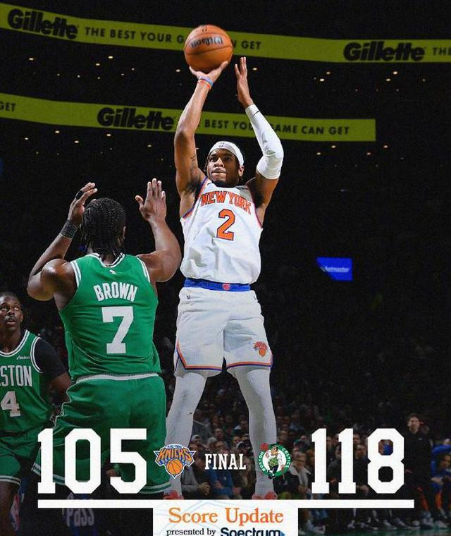 第四节,怀特连续命中三分球,帮助凯尔特人重新拉开比分。布朗则在末节连得11分,彻底压制了尼克斯的反扑势头。尽管唐斯在比赛中一度受伤,但他并无大碍,继续坚持比赛。最终,凯尔特人以118-105胜出,完成对尼克斯的赛季三杀。